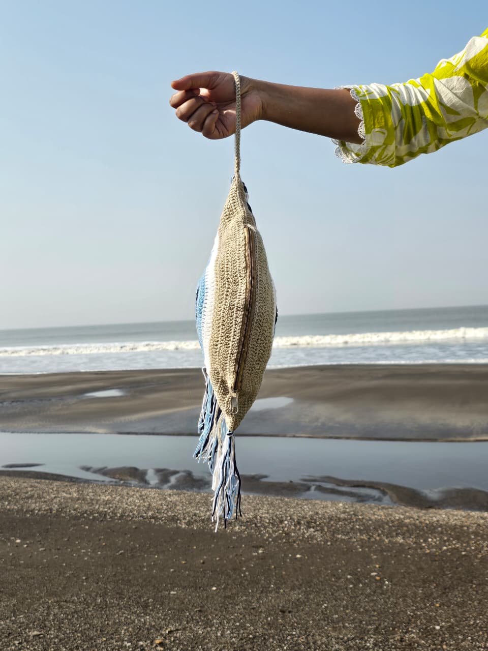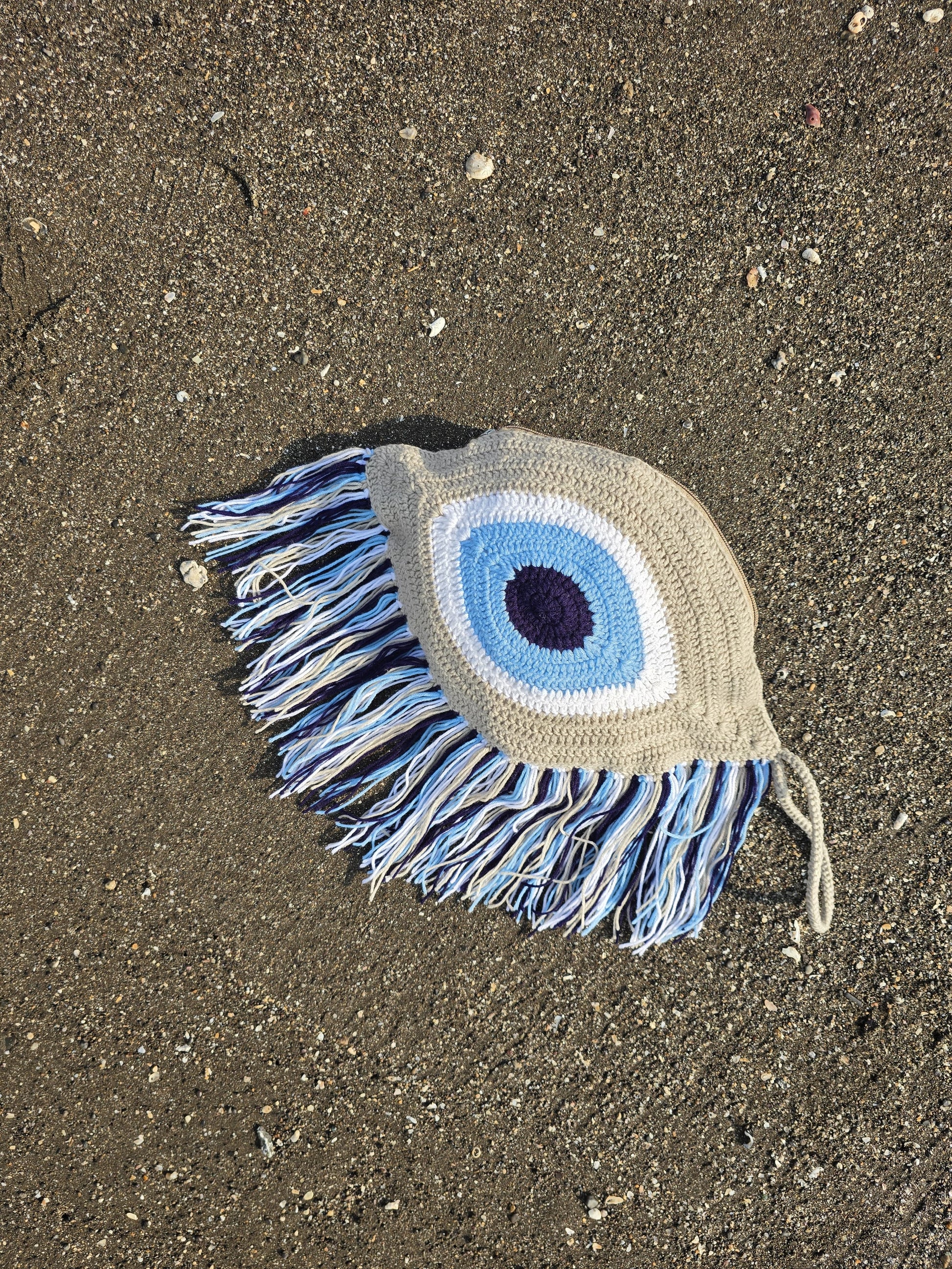 Elevate your accessory game with our stunning, handcrafted Evil Eye crochet bag. Combining traditional symbolism with modern bohemian style, this bag features intricate stitch work, vibrant blue tones, and playful fringe detailing. Perfect for a day at the beach, a summer festival, or simply adding a pop of personality to your daily outfit. Carry your essentials and ward off the bad vibes in style.