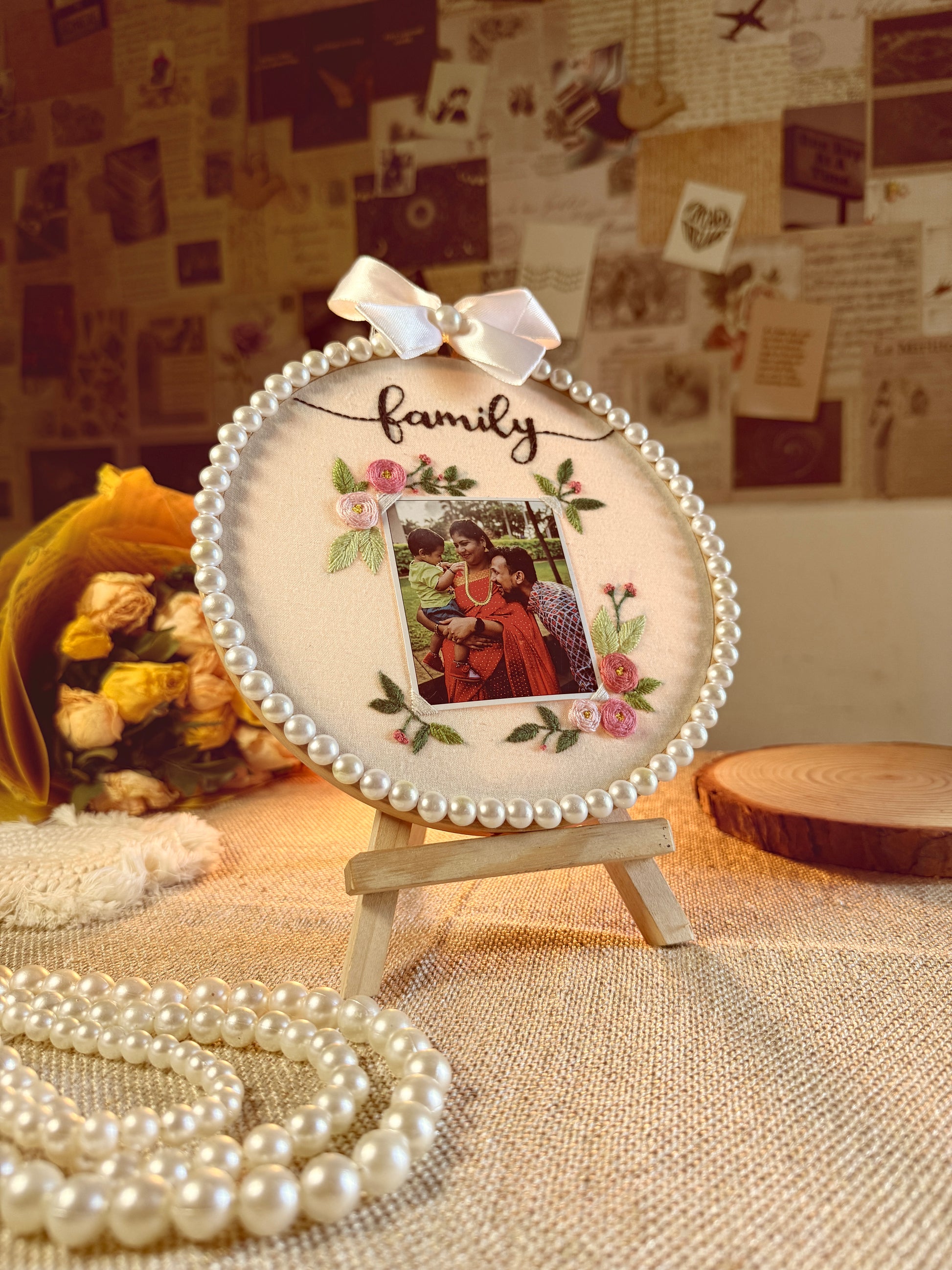 Introducing our handcrafted Embroidered Photo Frame – a personalized keepsake to cherish forever! 🌸✨ Fully customizable to reflect your unique touch, this frame is perfect for celebrating special moments, whether it's a birthday, wedding, or just a gesture of love.
