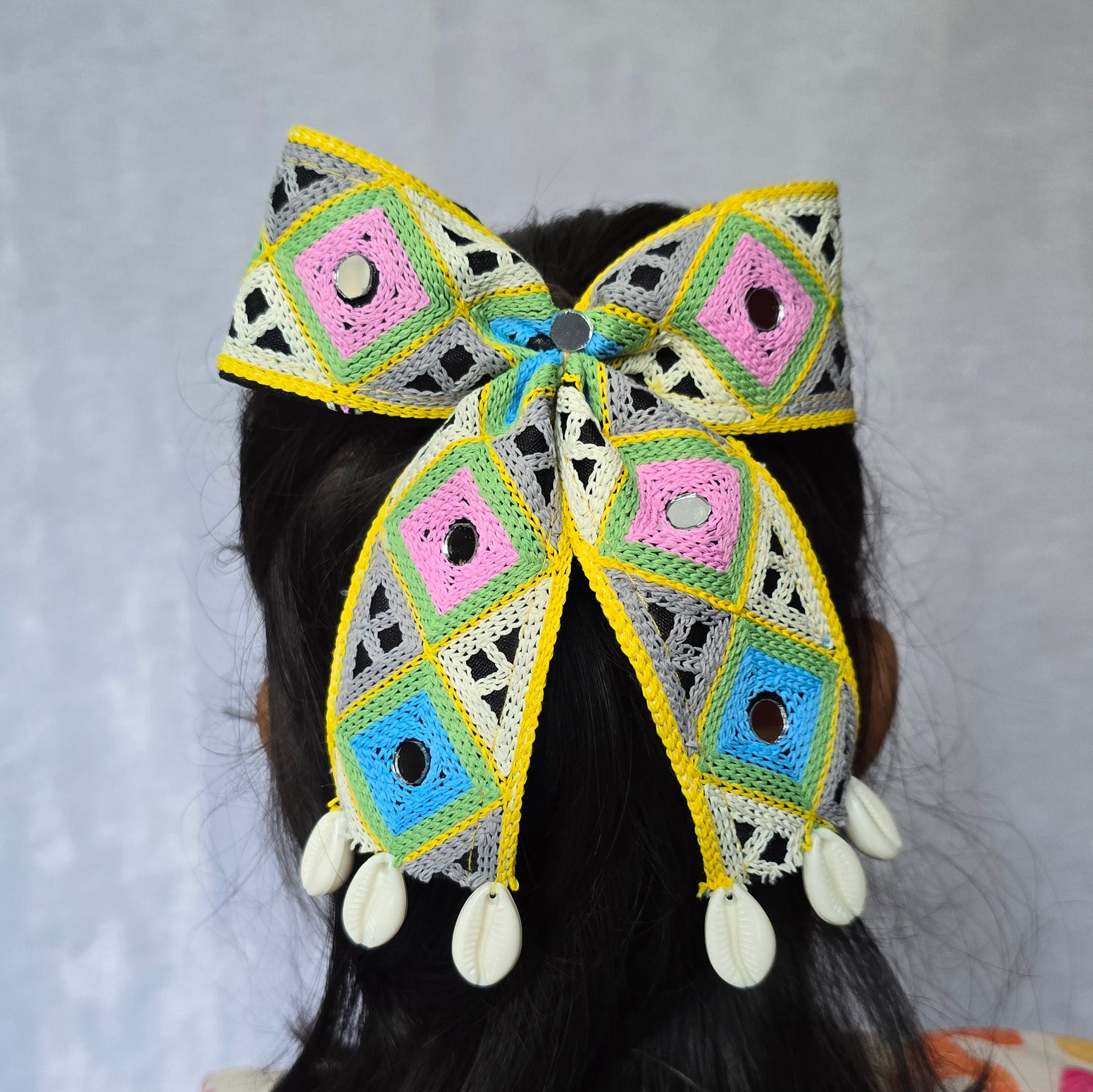 Handmade Navratri Bow with Mirror & Shell Detailing