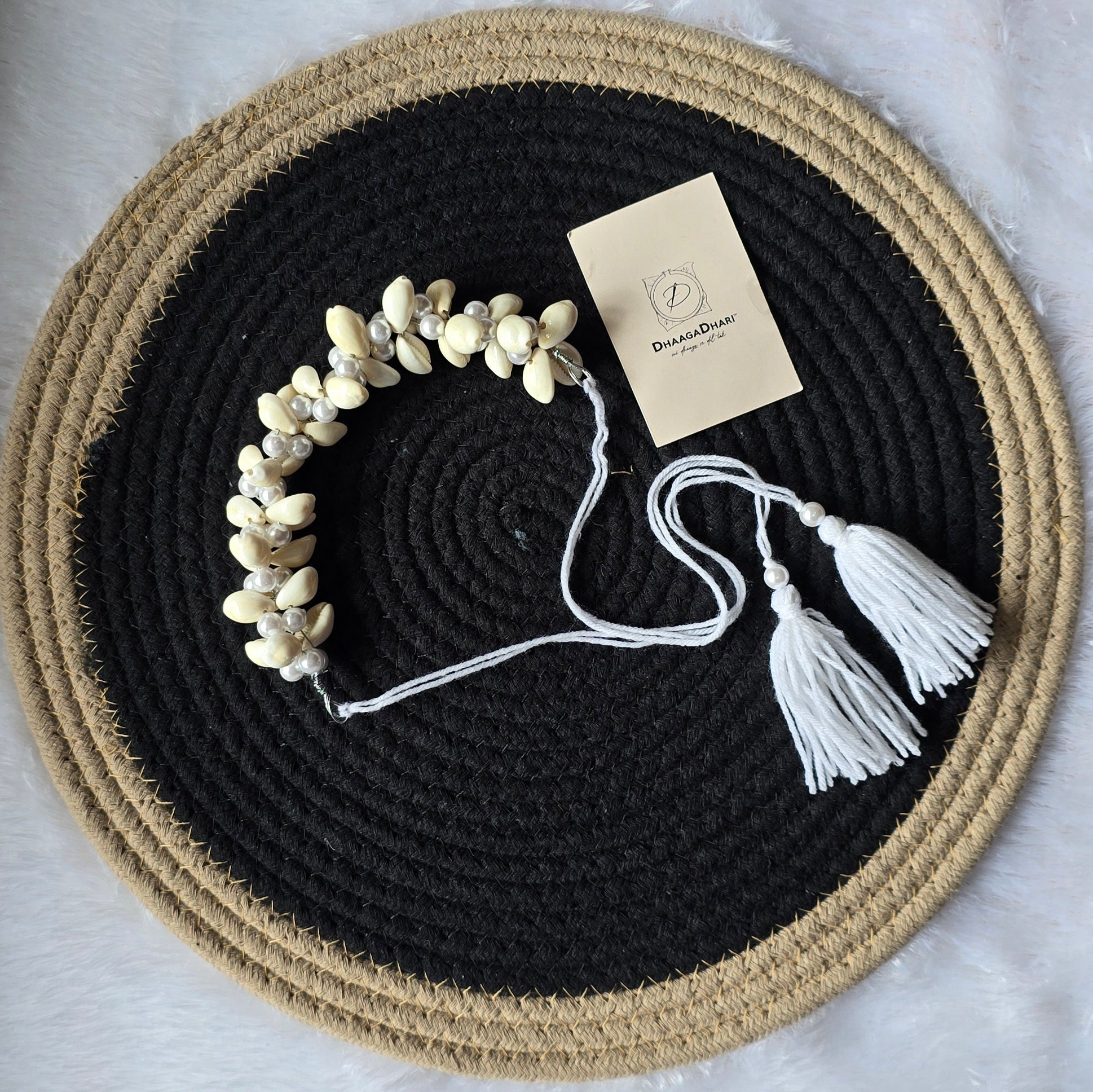 Elevate your Navratri style with our handmade shell gajra, crafted with natural shells, pearls, and soft tassels. Perfect as a statement hair accessory for Garba nights, festive occasions, and traditional celebrations. Lightweight, comfortable, and designed to add a unique charm to your ethnic look.