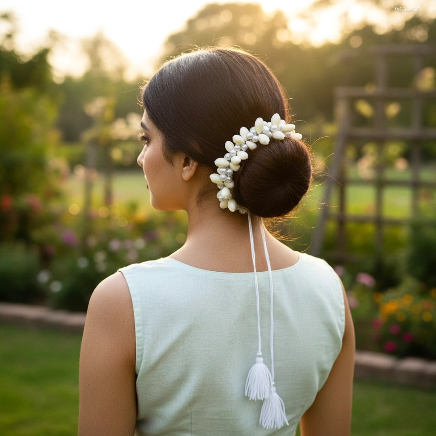 Handmade Shell Gajra – Festive Hair Accessory for Navratri | Wedding Look