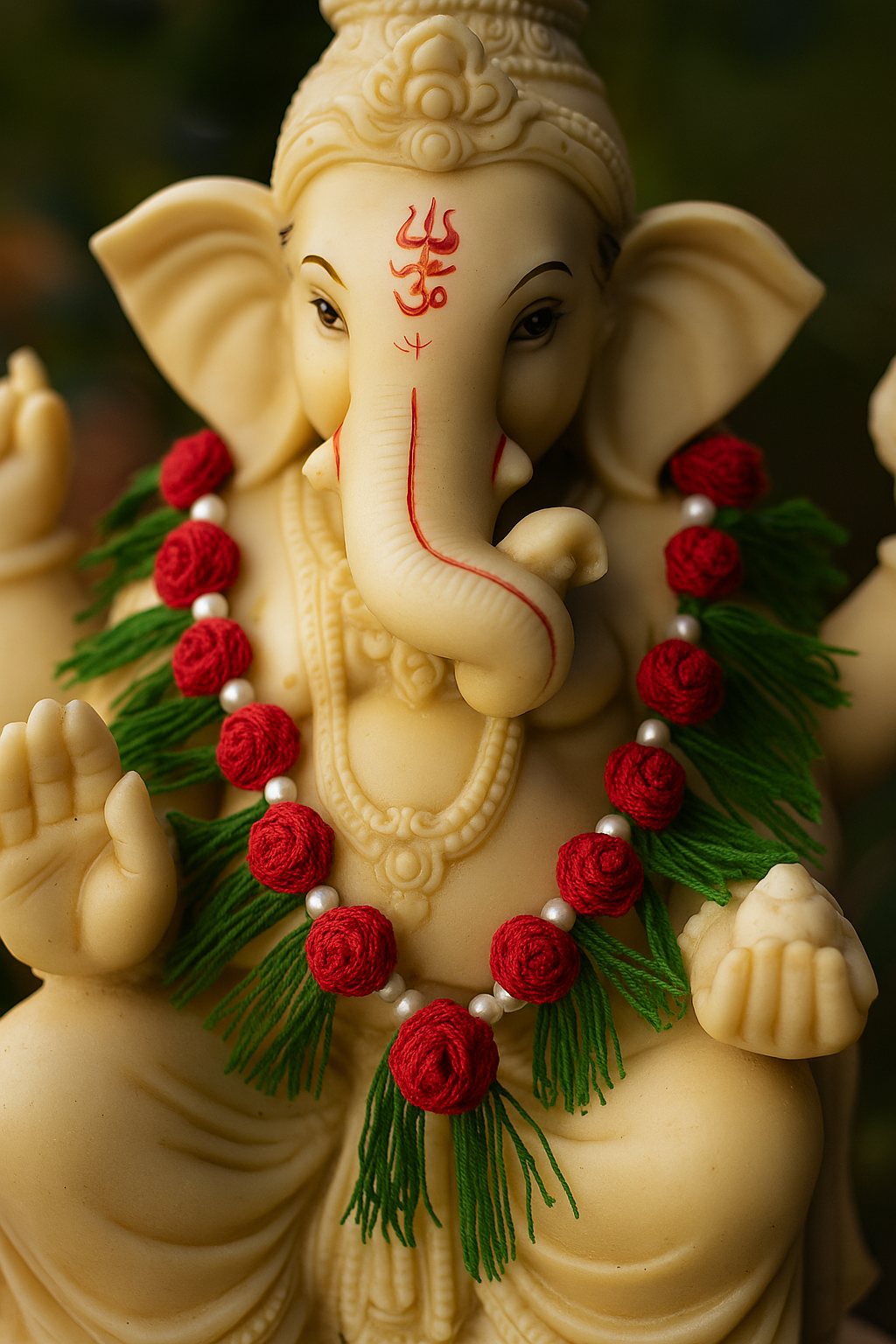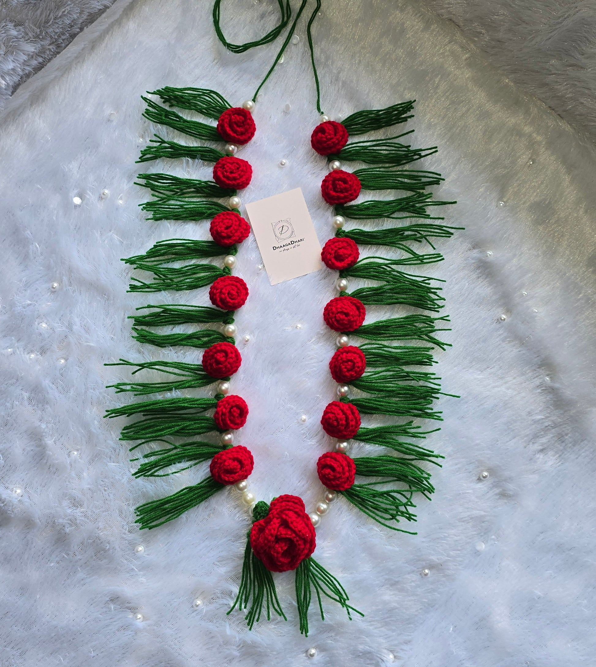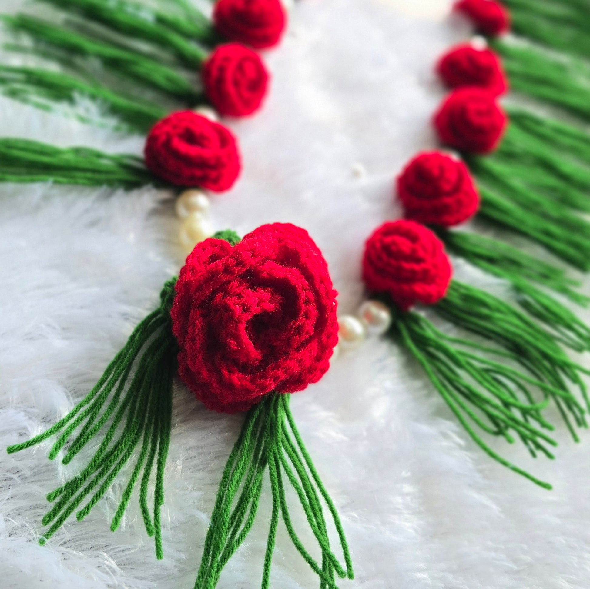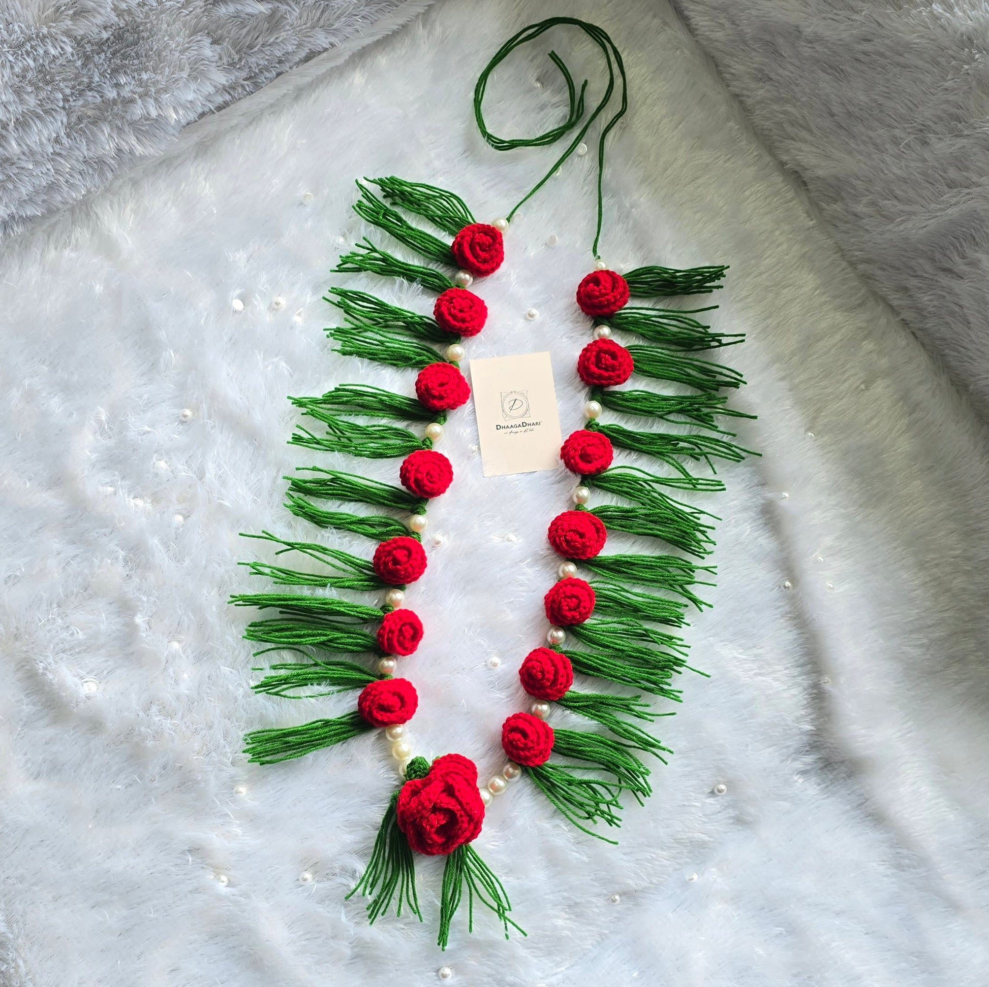 Fully Handmade Durva and Rose Crochet Garland for Ganesha Idol.